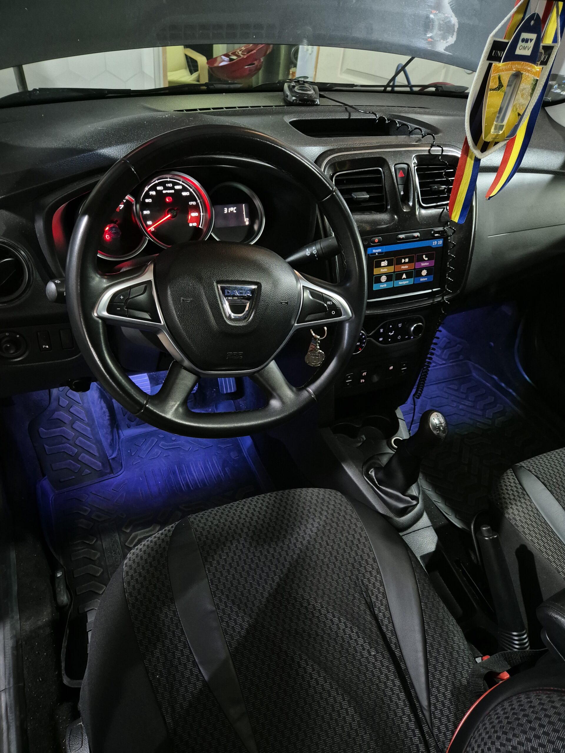 Dacia Logan 2 sistem audio si lumini ambientale la picioare
