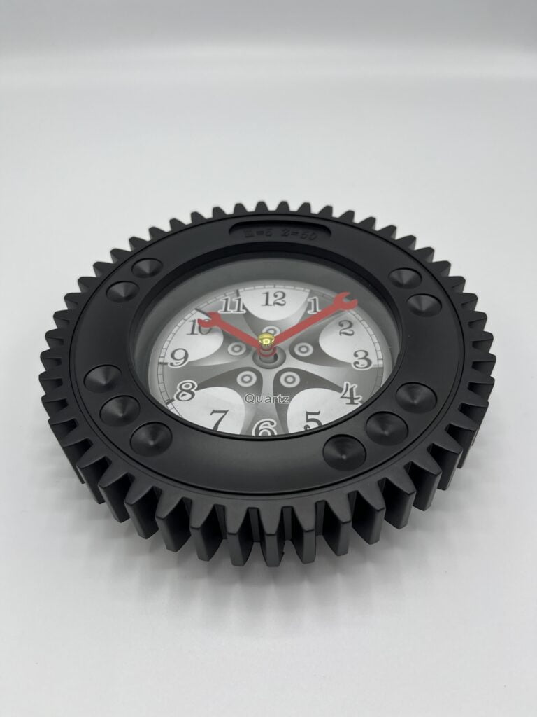 Acest ceas se evidentiaza prin designul sau unic, care adauga o nota subtila de pasiune pentru masini in orice incapere. Forma acestuia si detaliile sub forma de unelte de mecanica il fac potrivit pentru pasionatii de automobile.